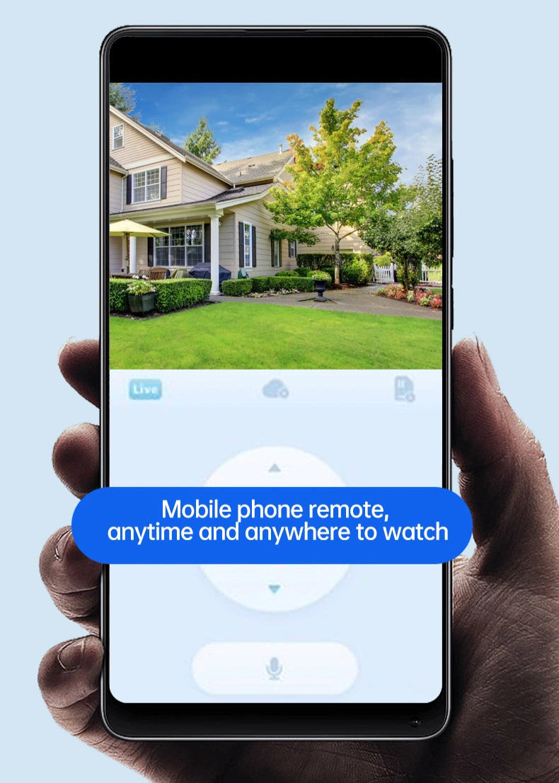 يمكن للهاتف المحمول التحكم في زاوية المراقبة، ويمكن لعدسة الكاميرا الدوران بشكل مرن لأعلى ولأسفل لتحقيق مراقبة بانورامية بزاوية 360 درجة